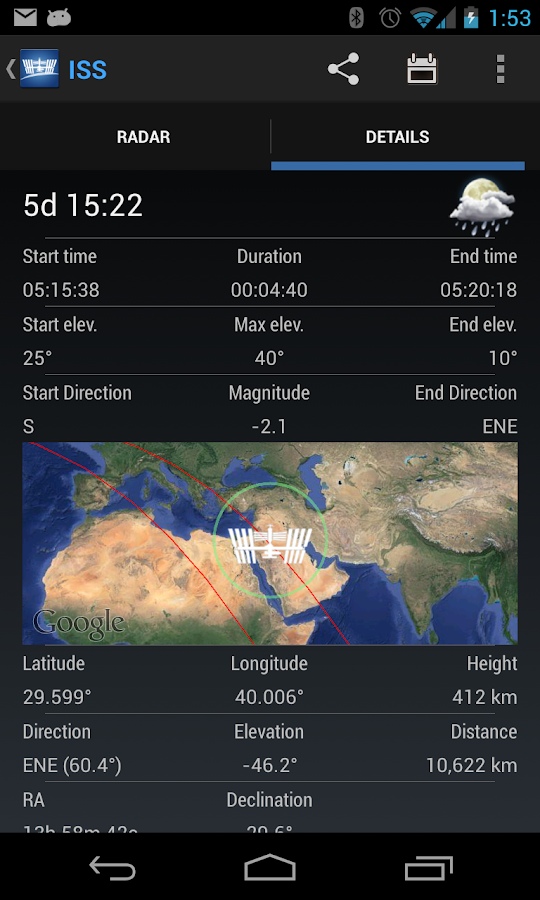 53 Top Pictures Iss Tracker App Download : ISS Detector Satellite Tracker - Android Apps on Google Play. You know, space 'n stuff. All these apps can be downloaded on your android devices free. Iss detector will tell you when and where to look for the iss. Iss location, iss earth, nasa , iss locator, iss live moving, space persons, astronauts, iss. You can view the earth from space live.